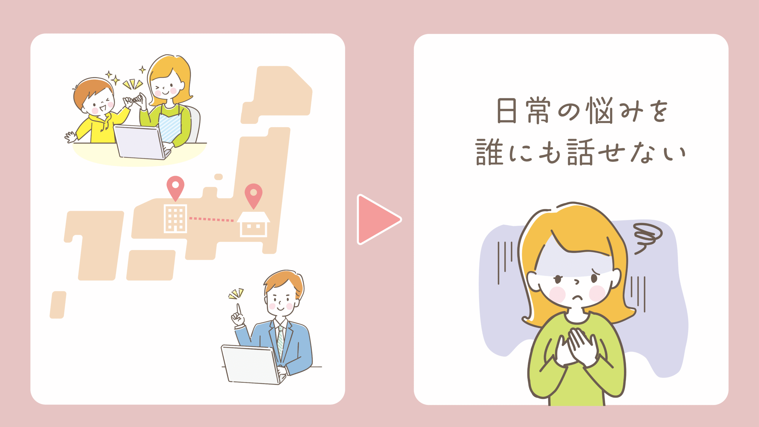 日常的に悩みを家族に相談することもできずにいたので、よく話すママ友に相談しても「そんなものじゃない?」と言われてしまい、スッキリしないまま悩みを持ち続けていました。気が付けば気軽に悩みを話せる場所がないことで孤独感を感じ、どんどんストレスが溜まってしまい、次第にネガティブ思考で毎日を過ごすようになっていました。