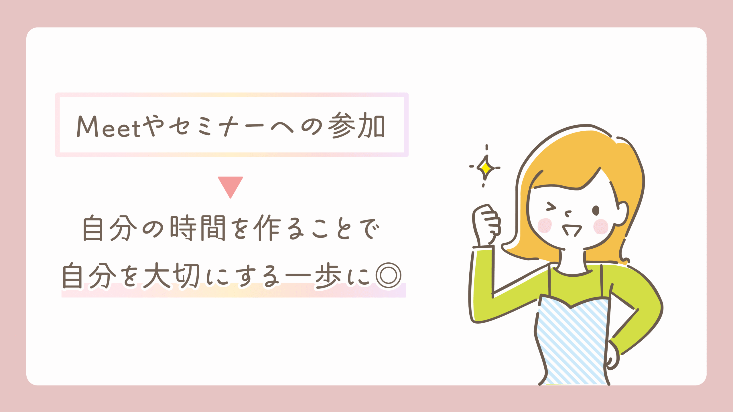 あと、新しいことにチャレンジできることも良いところ!オンラインでサロンメンバーと直接顔をみて話す「Meet」というイベントがあるんですが、そこで色々な分野のセミナーを受けてみたり、自分自身のことを話したみたり、色々な経験が出来てとても面白いです。そのMeetで「人に話題を振るスキル」を学び、日常生活でも活かしてみたりと、さらに自信をつけることが出来ました。